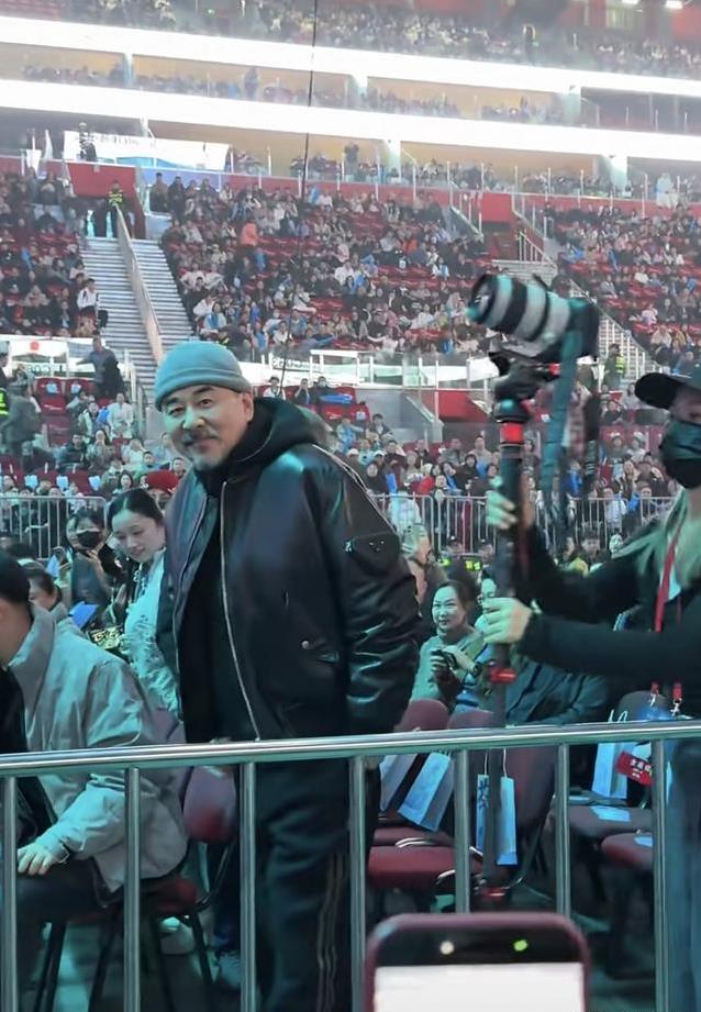 现场照片流出后,大家的目光很快落在陈建斌身上。他穿黑色卫衣配皮衣,戴灰色毛帽,蓄着些许花白胡须,整个人透出一种岁月沉淀后的随意与从容。不少观众一眼认出他,立刻喊起四郎或者皇上的称呼,仿佛把十四年前那部热播剧的场景直接搬到了演唱会场内。陈建斌面对这些热情呼声,多少显得有些手足无措,笑容里夹杂着几分无奈与亲切。角色深入人心到这种程度,时间过去这么多年依然能唤起集体记忆,确实让人感慨角色的生命力有多顽强。