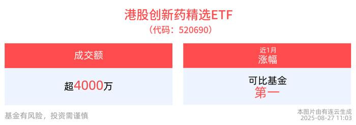 流动性方面,港股创新药精选ETF盘中换手15.85%,成交4917.02万元,市场交投活跃。拉长时间看,截至8月26日,港股创新药精选ETF近1周日均成交8045.18万元。