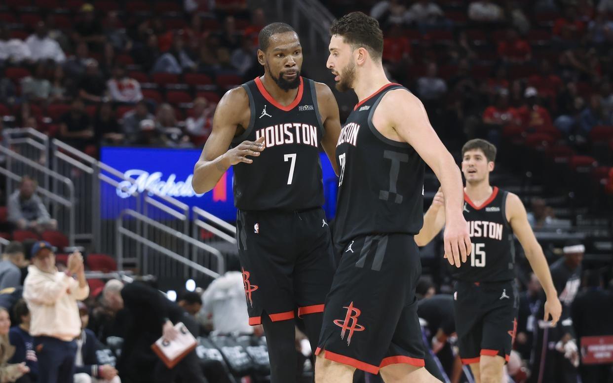 而有一项统计显示,在2月份,各支球队首发锋线组合的场均得分榜上,快船队的莱昂纳德和科林斯这对组合场均可以贡献44.7分,排名联盟第一,而火箭队则排名联盟第二,他们的小前锋杜兰特加大前锋小史密斯,场均可以贡献43.8分。
