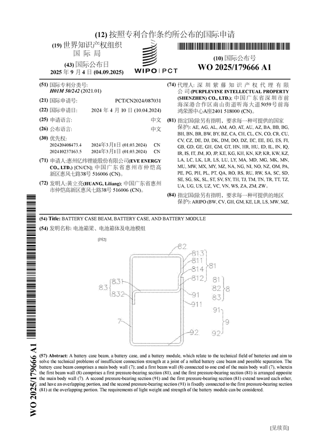 证券之星消息,根据企查查数据显示亿纬锂能(300014)公布了一项国际专利申请配资世界,专利名为“电池箱梁、电池箱体及电池模组”,专利申请号为PCT/CN2024/087031,国际公布日为2025年9月4日。