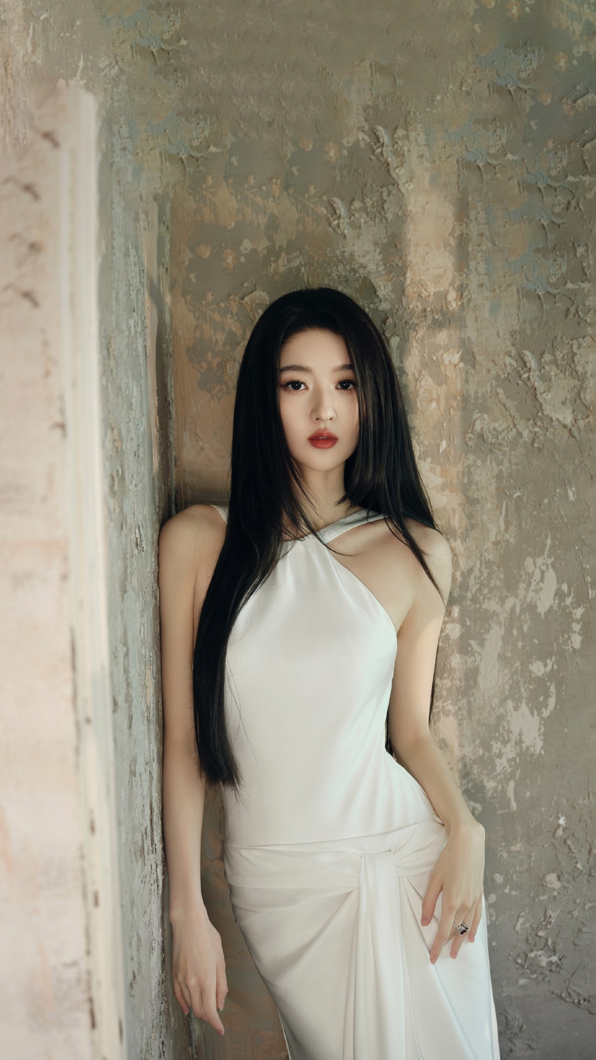 重点来了——那抹红唇!在一身纯白的映衬下,简直像雪地里开出一朵玫瑰。它不抢戏,却稳稳C位,瞬间点亮整张画面,也把王玉雯骨子里那股独立又坚定的气质勾了出来。白裙+红唇+旧墙,三种元素碰撞出奇妙的化学反应:新与旧、柔与刚、静与动,全在一张照片里达成微妙平衡。