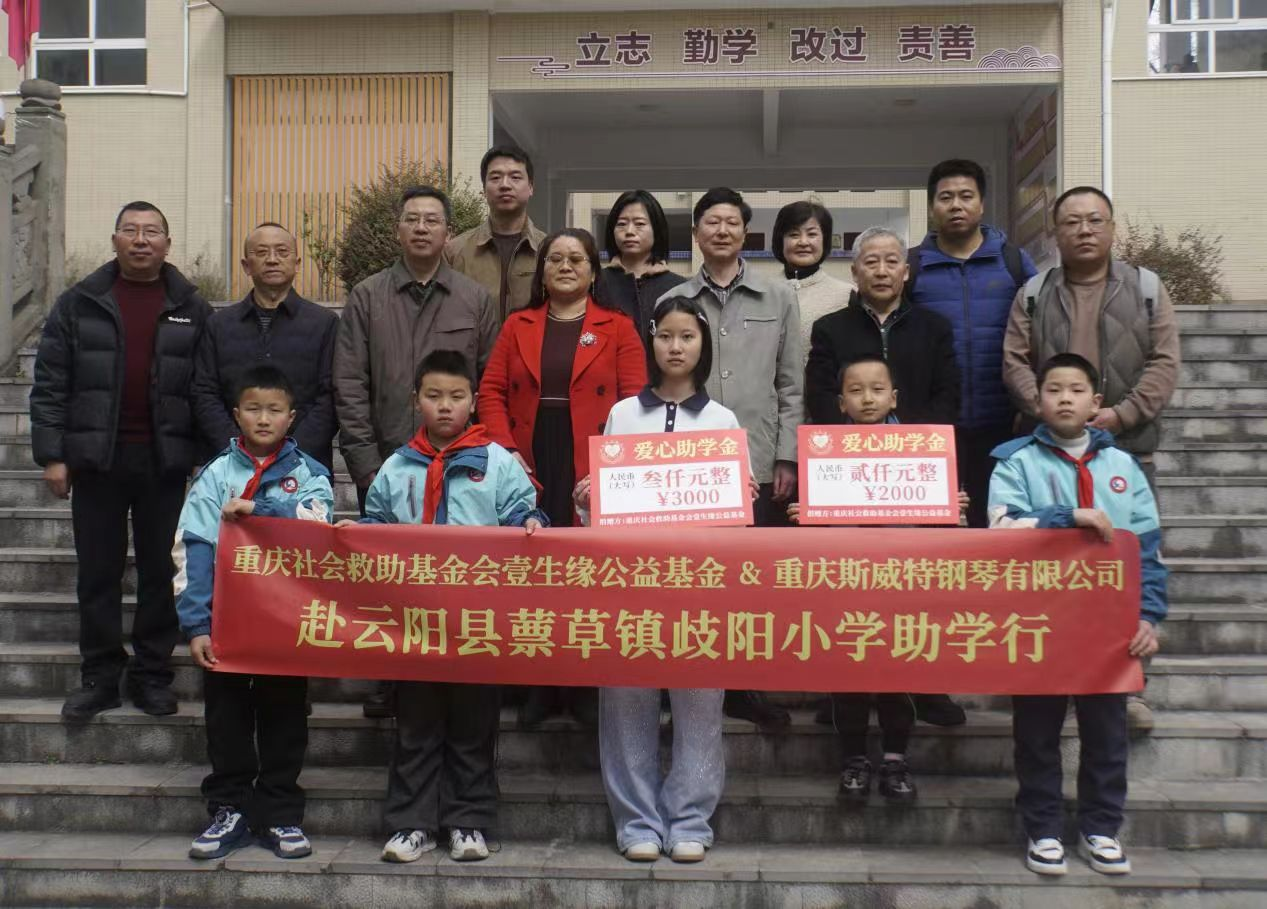 近日,重庆社会救助基金会壹生缘公益基金携手爱心企业,在云阳县蔈草镇歧阳小学开展“爱心点亮求学路”捐赠活动,为乡村学子的成长之路注入温暖与力量。5名品学兼优的困难家庭学生收到了特殊的“开学礼物”——助学金。